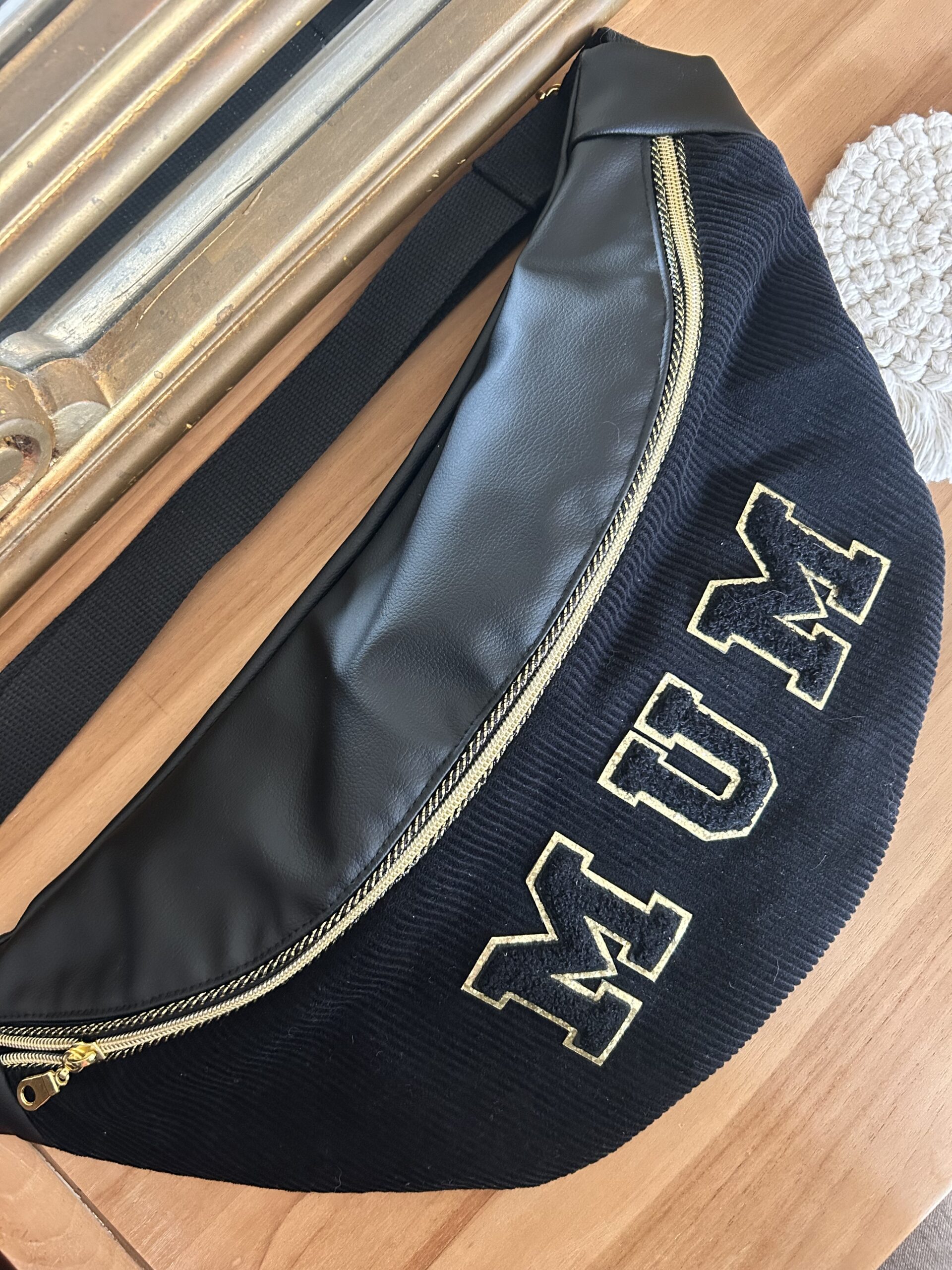 !!! Modèle déposé INPI!!!   Banane MUM taille M bi-matière simili noir et cotelé noir   Taille 45cm*23cm