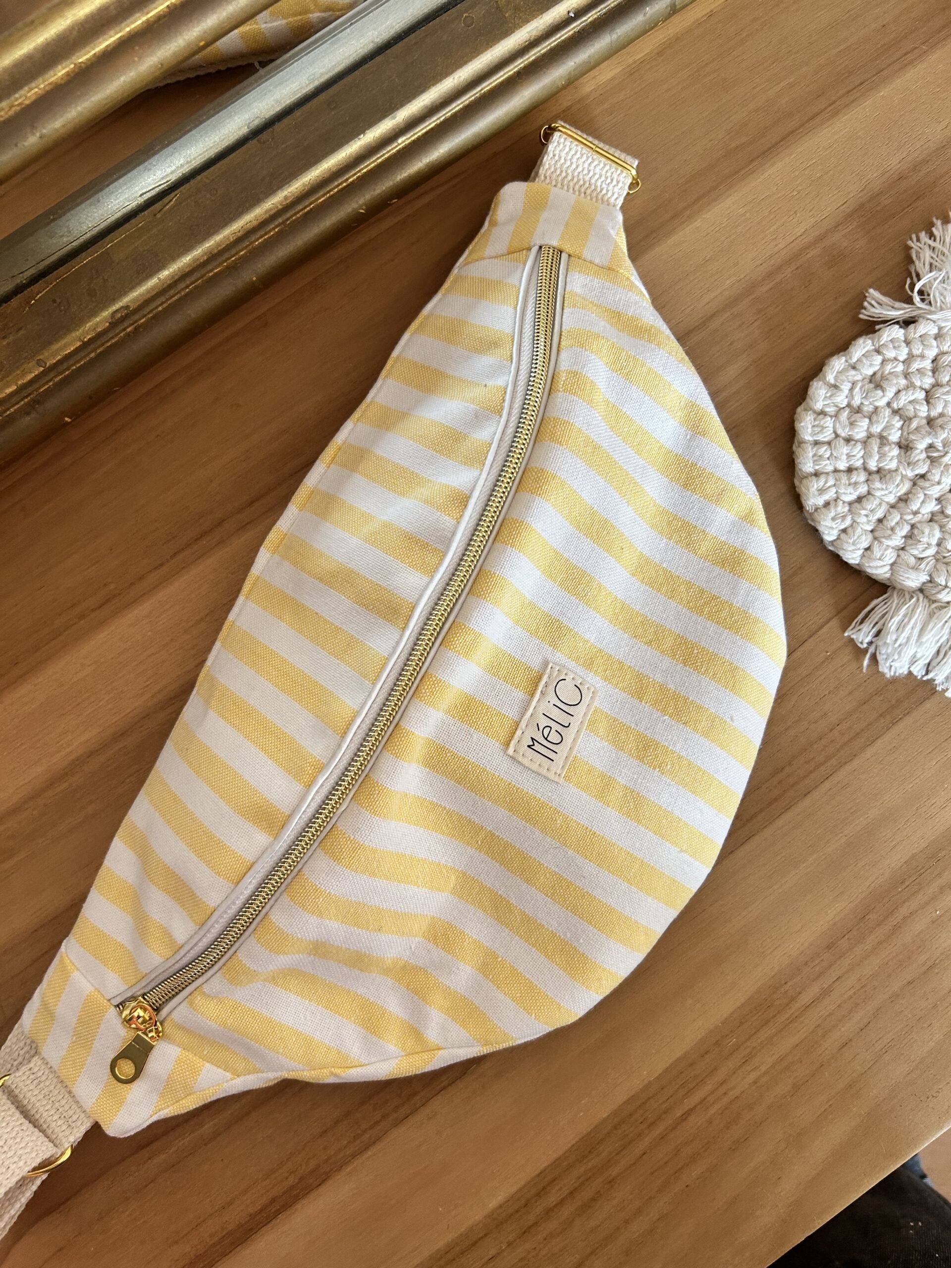 Banana taille S collection summer jaune toujours avec une poche zippée à l’intérieure et une accroche clefs possible commande délai de créations sous 4-5 semaines
