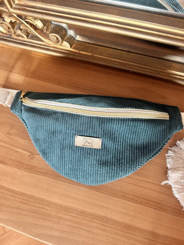 banane taille XS ou enfant jean bleu et détail fleurit ( a préciser pour la création car métrage sangle différent) cœur bleu , fermeture doré si dispo envoi sous 3 jours ouvrés